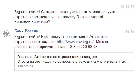 Действительно, даже на личные сообщения администрация страницы ЦБ на Facebook отвечает быстро и достаточно компетентно. Так, корреспондент Банки.ру получил ответ в течение всего 25 минут: