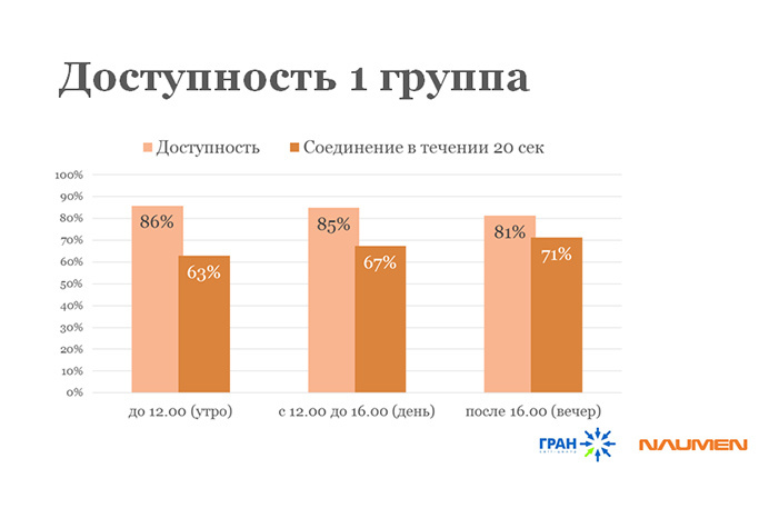 Компания Naumen провела очередное ежегодное исследование доступности банковских контакт-центров. В этом году свыше половины звонков (66%) были приняты операторами в течение первых 20 секунд. Лишь в 18% случаев из 3 тыс. прозвонов ожидание продлилось более 90 секунд.