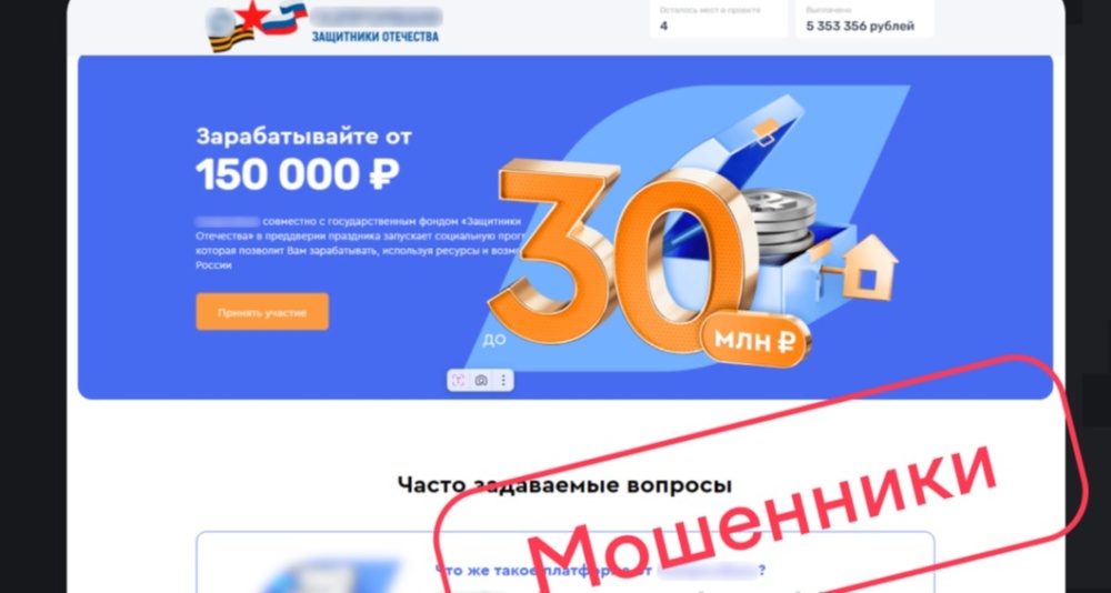 Мошенники создали сайты, на которых размещены ложные сообщения о запуске «социального проекта» с предложением заработать до 30 млн рублей, «используя ресурсы и возможности России». Все эти сайты разработаны по типовому шаблону, предположительно, в рамках партнерской мошеннической программы. Пользователям предлагают инвестировать в акции российских компаний. Для придания этим сообщениям правдоподобности злоумышленники размещают фейковые комментарии от имени людей, которые якобы получили крупные выплаты.
