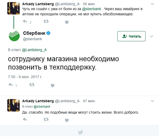 Отметим, что жалобы держателей карт в соцсетях на невозможность проведения операций через POS-терминалы Сбербанка продолжают поступать до сих пор.