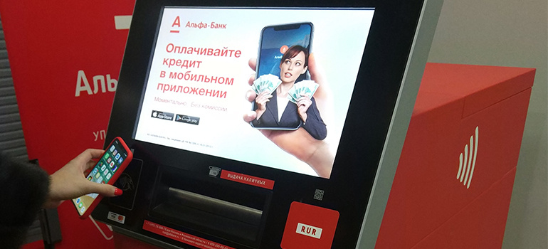 На текущий момент полностью бесконтактные банкоматы в России внедряет Альфа-Банк. Два таких банкомата в рамках пилотного проекта установлены в Москве, на территории предприятий, обслуживаемых в рамках зарплатных проектов. По окончании пилота проект может быть масштабирован на всю Россию. Но уже сейчас зарплатные клиенты могут обратиться к своему работодателю, а он — в банк, чтобы тот установил на территории предприятия бесконтактный банкомат.