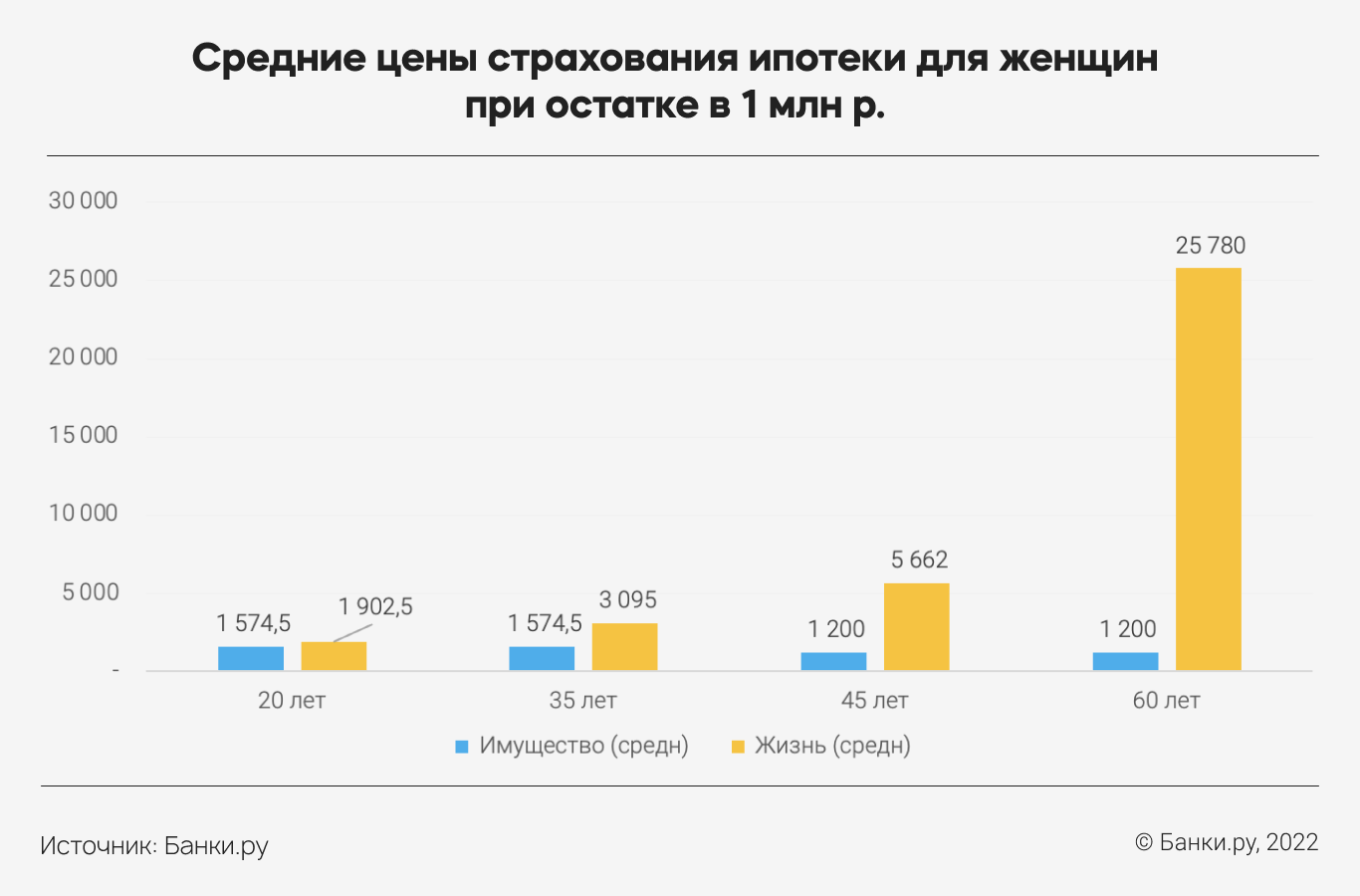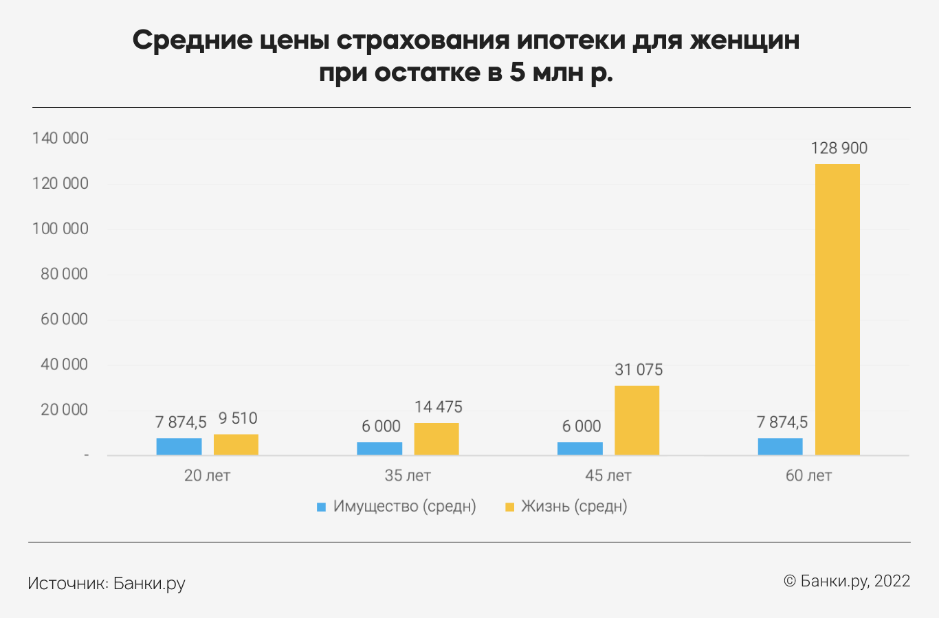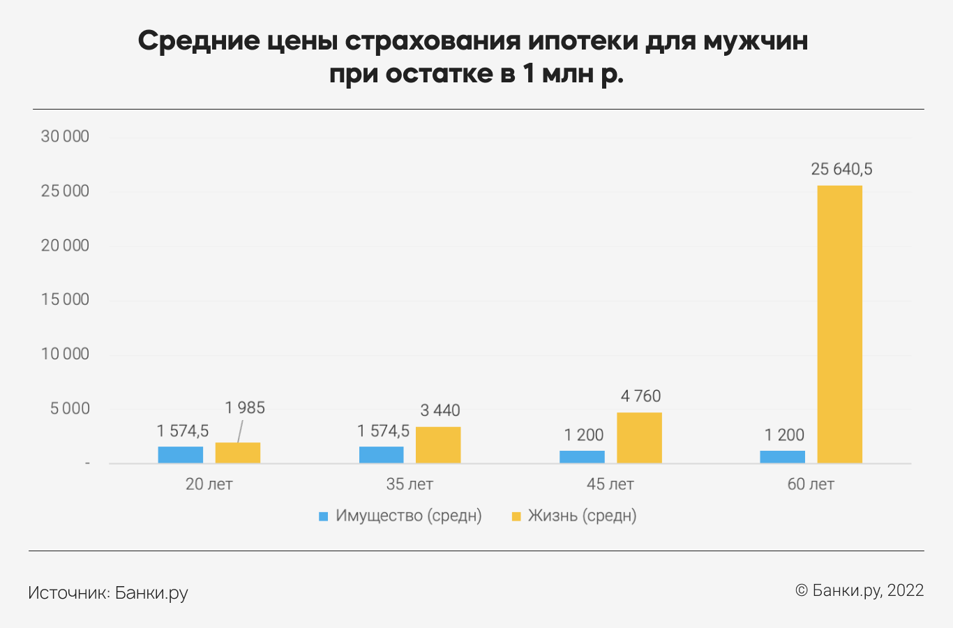 В некоторых возрастных группах максимальная цена за страхование имущества иногда даже выше, чем минимальная по страхованию жизни и здоровья. Чем выше остаток по кредиту, тем сильнее разрыв между минимальной и максимальной ценой страхования, которую можно найти на рынке.