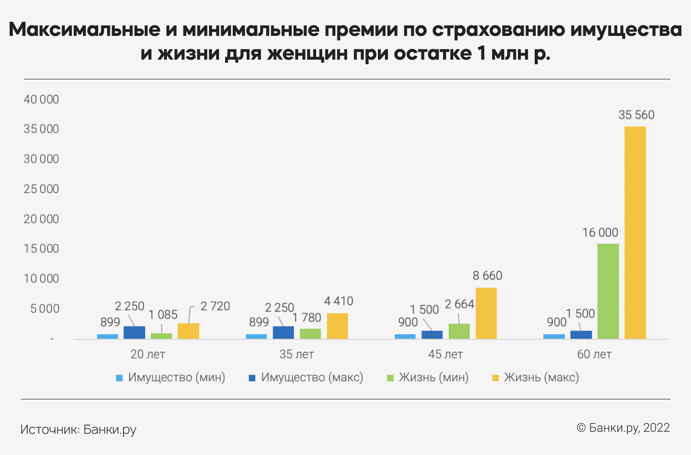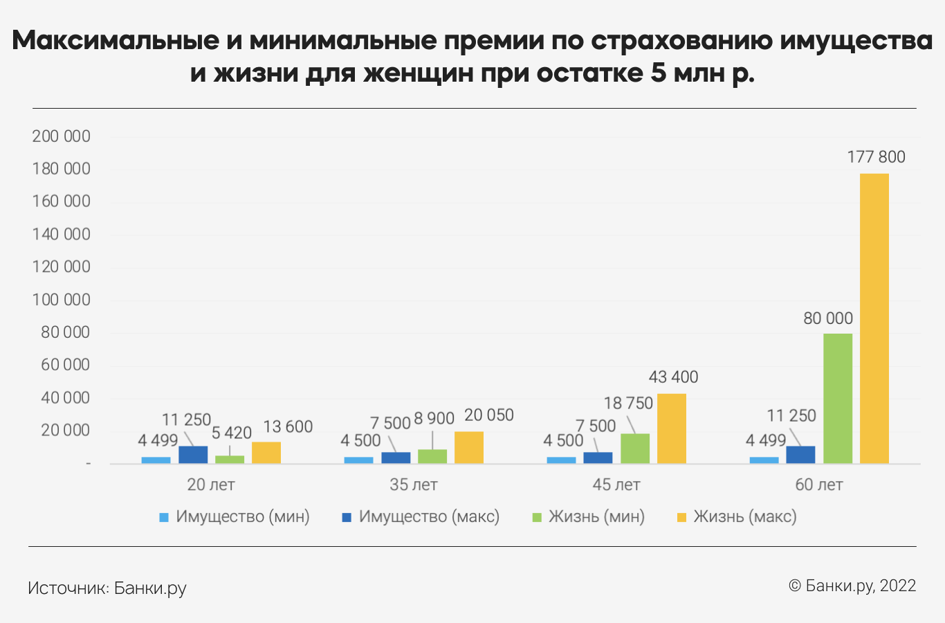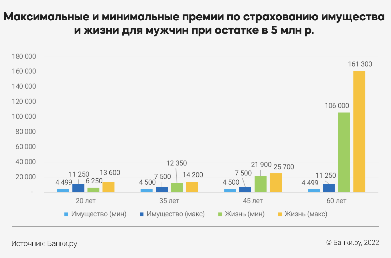 В некоторых возрастных группах максимальная цена за страхование имущества иногда даже выше, чем минимальная по страхованию жизни и здоровья. Чем выше остаток по кредиту, тем сильнее разрыв между минимальной и максимальной ценой страхования, которую можно найти на рынке.