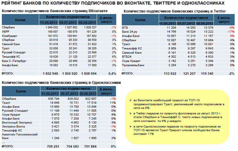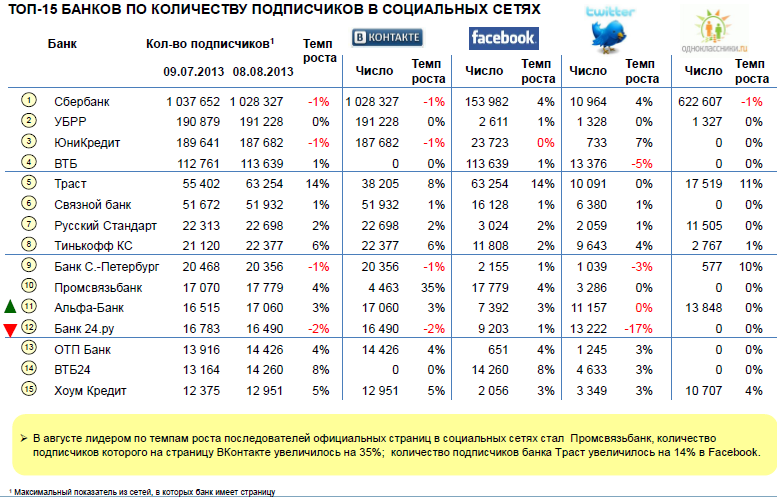 Промсвязьбанк, количество подписчиков которого на страницу «ВКонтакте» увеличилось на 35%;