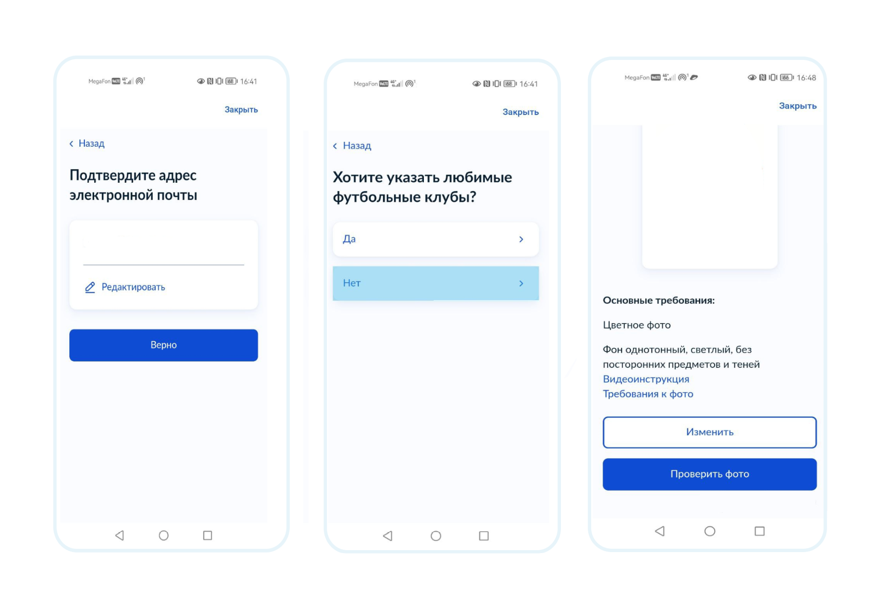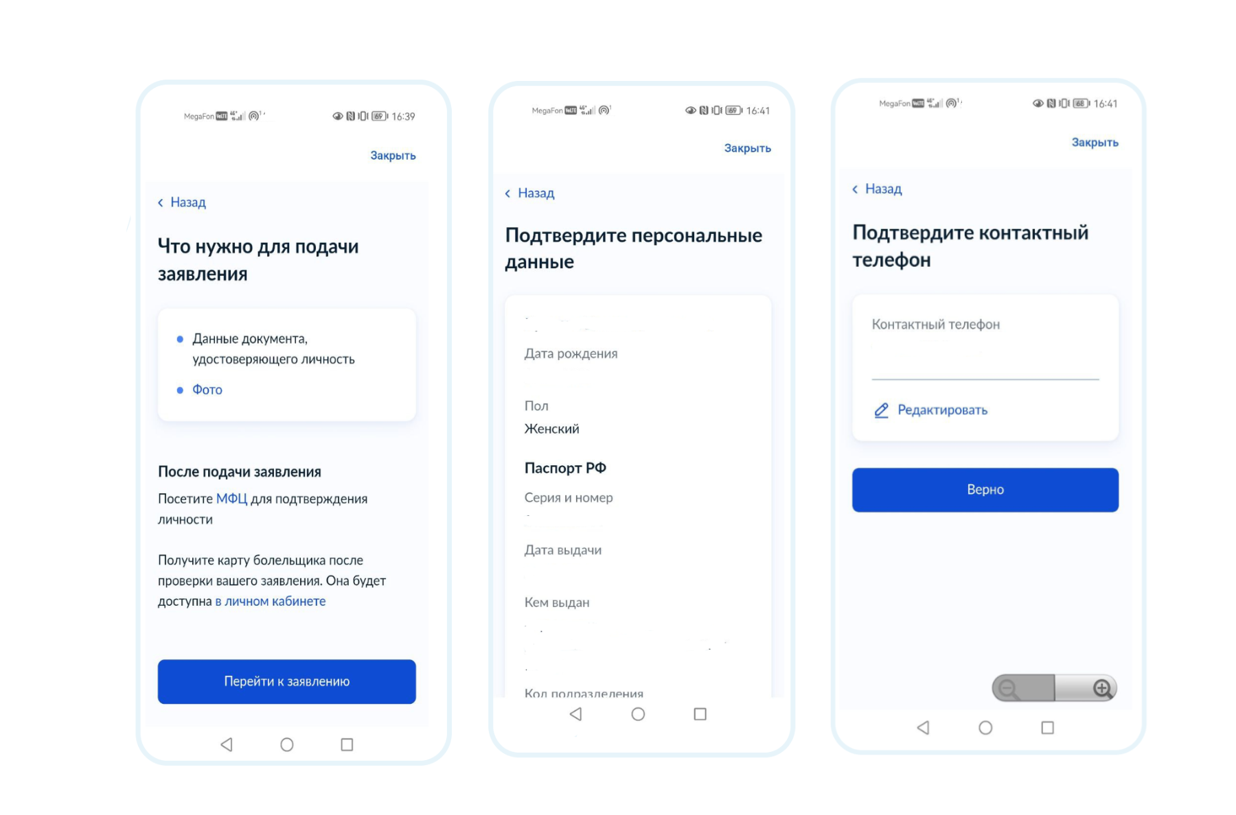 Паспорт прикладывают к телефону, затем приложение предлагает сделать селфи и записать голос. После отправки данные проверяют до трех дней. Карта появляется в приложении и на «Госуслугах».