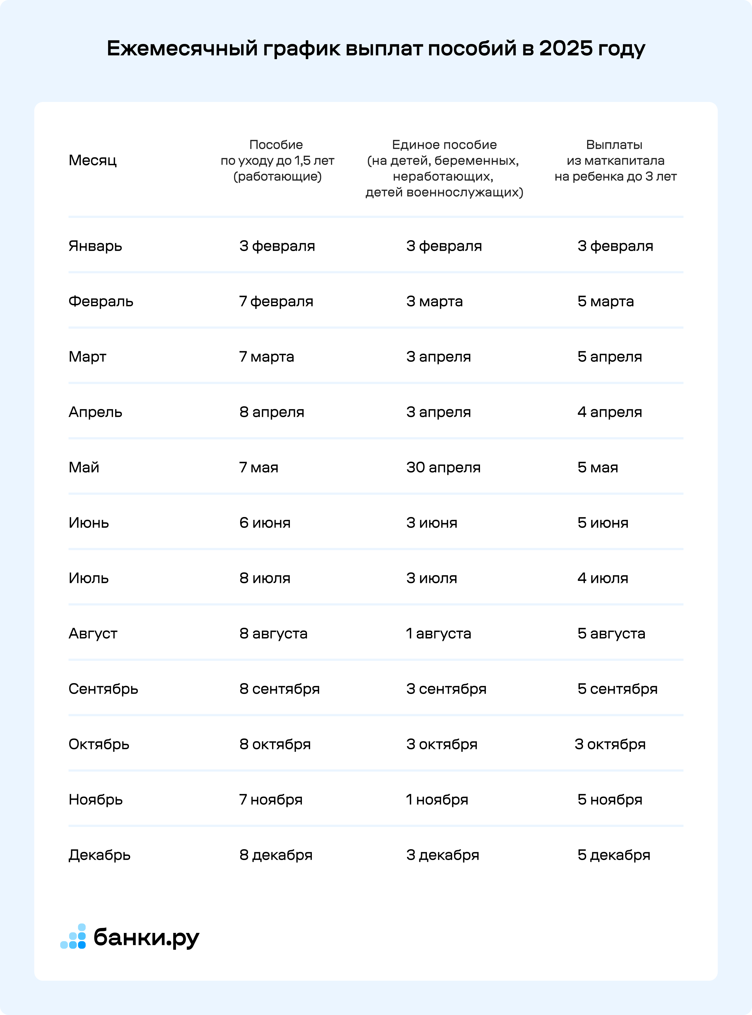 В таблице ниже рассказываем, какого числа приходят детские выплаты в 2025 году. График поможет спланировать траты и понять, когда ждать деньги.