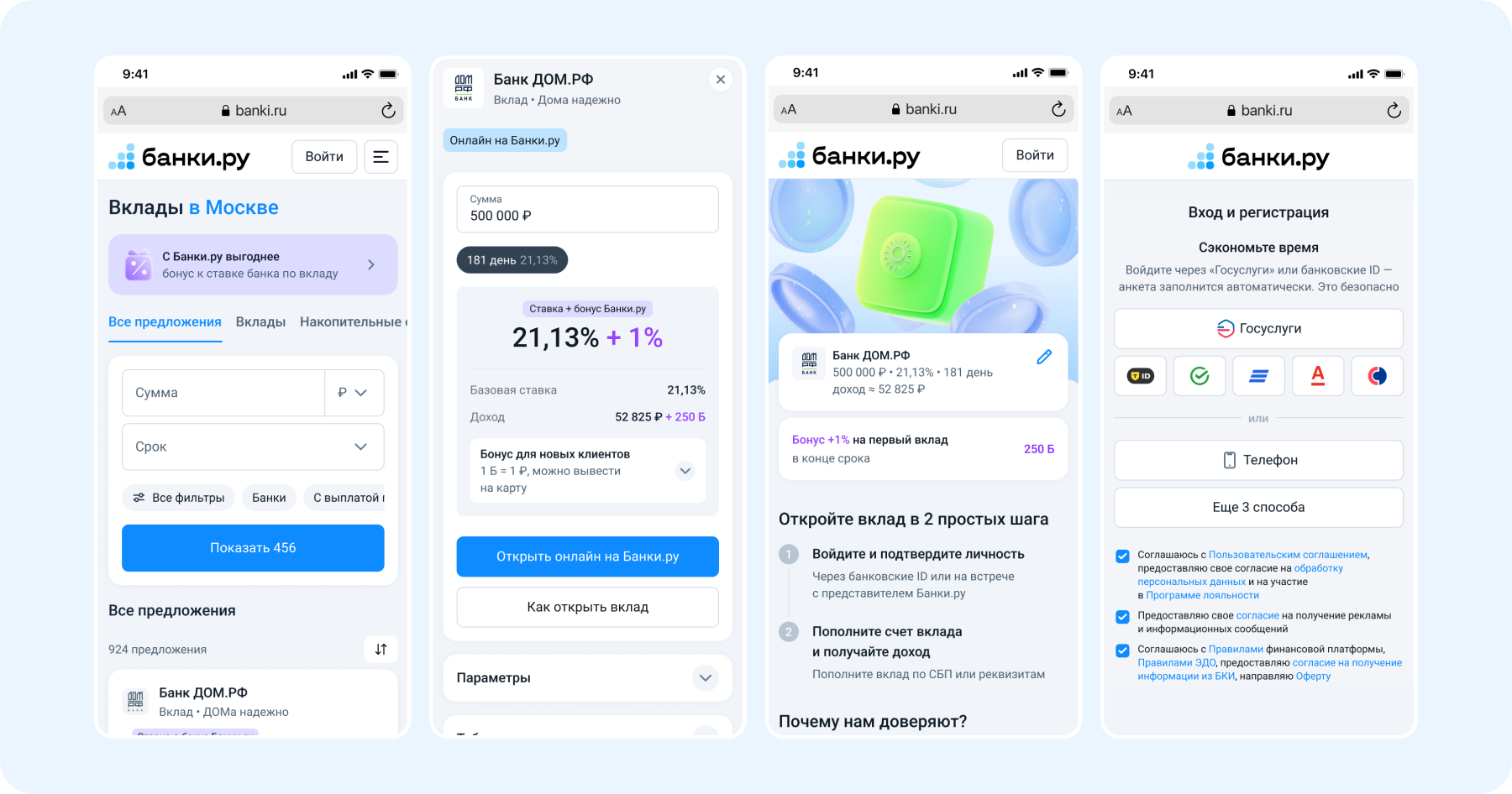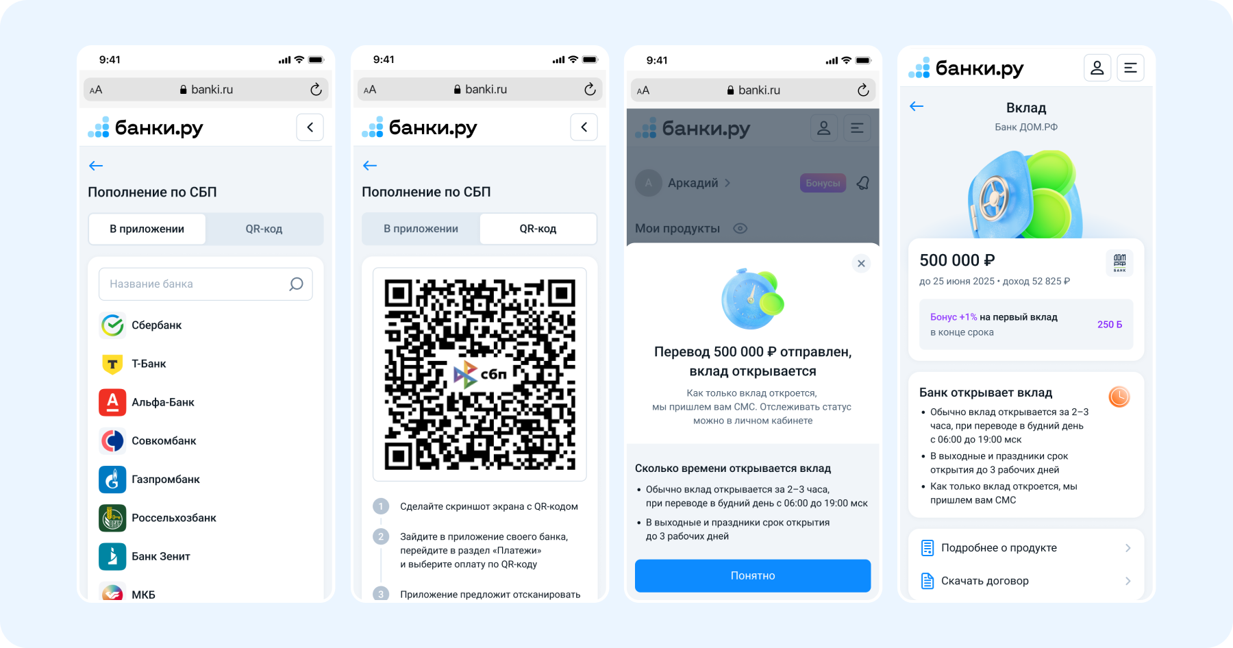 На нашем сайте или в приложении вы можете открыть вклады с пометкой «Онлайн на Банки.ру».