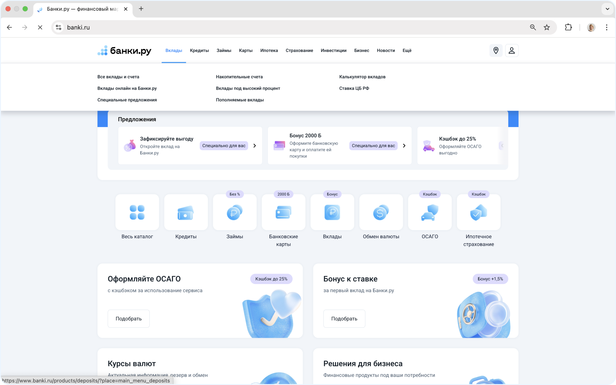 Шаг 1. Откройте калькулятор вкладов на сайте Банки.ру