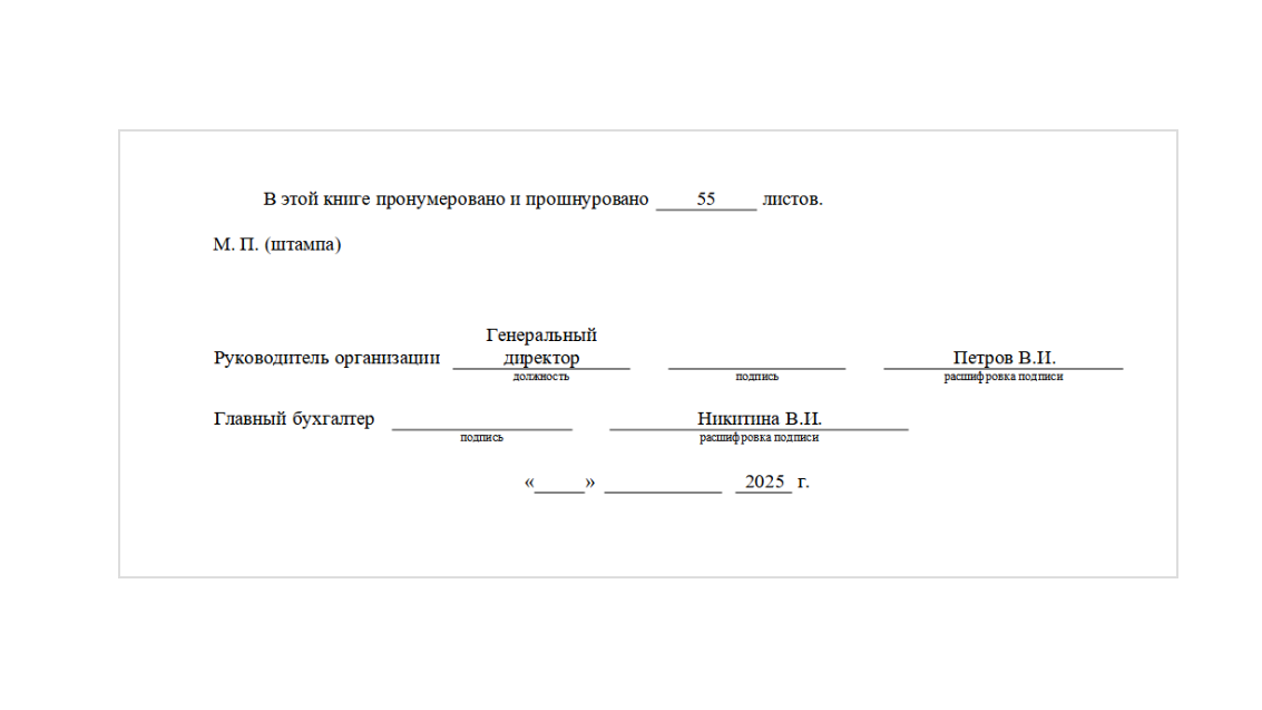 В конце главный бухгалтер или бухгалтер прописными буквами указывают число приходных и расходных кассовых ордеров по каждому виду отдельно.