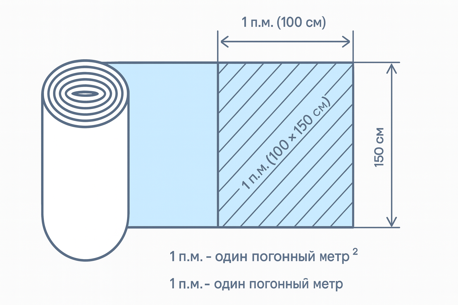 Отделочные материалы в рулонах — обои, линолеум, ковролин, плинтусы, панели ПВХ и МДФ — традиционно продаются в погонных метрах. Это сделано для удобства подсчетов.
