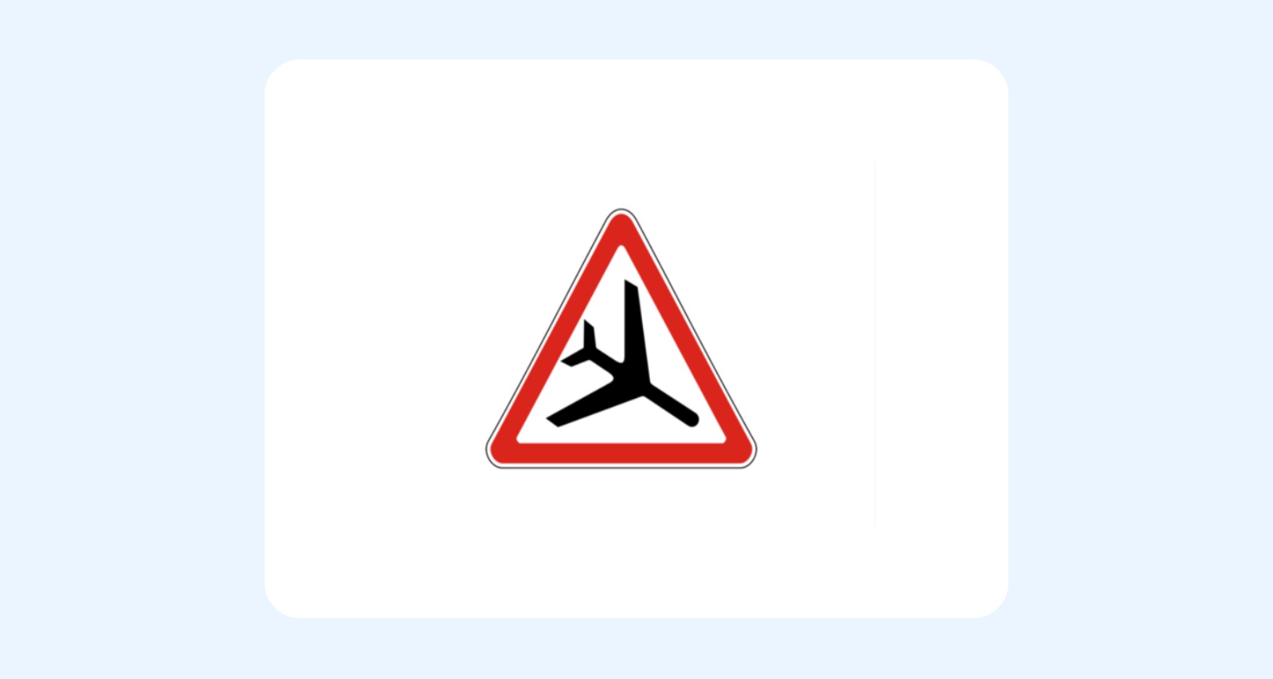 Важно! При наличии этого предупреждающего знака пересекающиеся дороги считаются равнозначными независимо от их покрытия, плюс на этом перекрестке отменяются все приоритеты, установленные ранее. На таких перекрестках обгон запрещен.