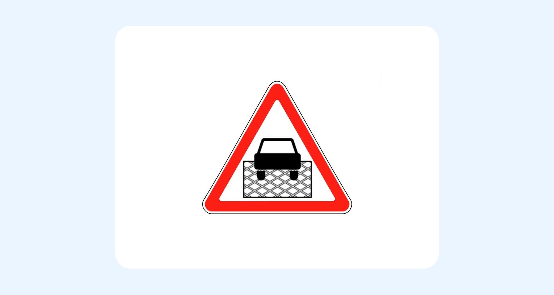 Информационная табличка 1.16 «Неровная дорога» подсказывает: впереди вас ждут выбоины, ямы или кочки. Как предупреждающий, этот знак имеет вид белого треугольника с красной окантовкой, внизу которого нанесен черный рисунок, имитирующий волнистое дорожное покрытие.