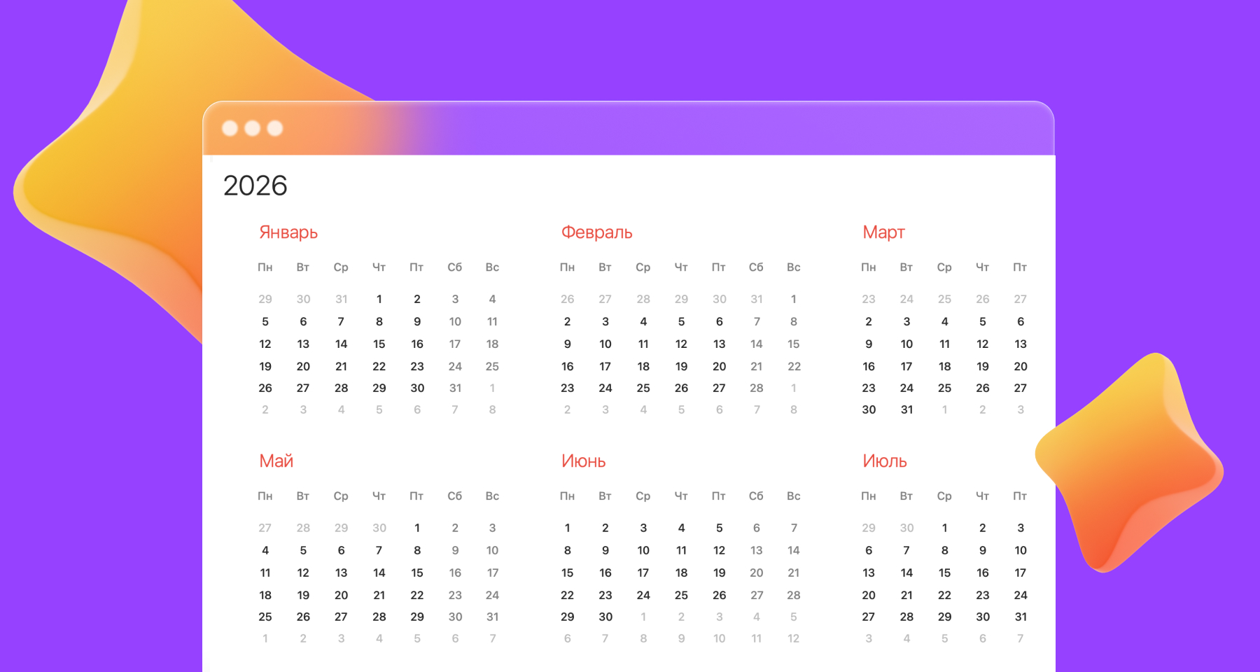 Апрель — самый «ровный» месяц: без праздников, переносов и сокращенных дней. Это удобно для планирования задач, но не самый выгодный месяц для длинных выходных.