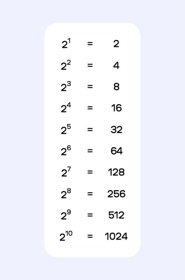 | 2⁹ | 512 |