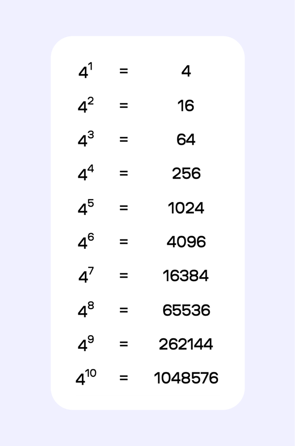 | 4¹⁰ | 1 048 576 |