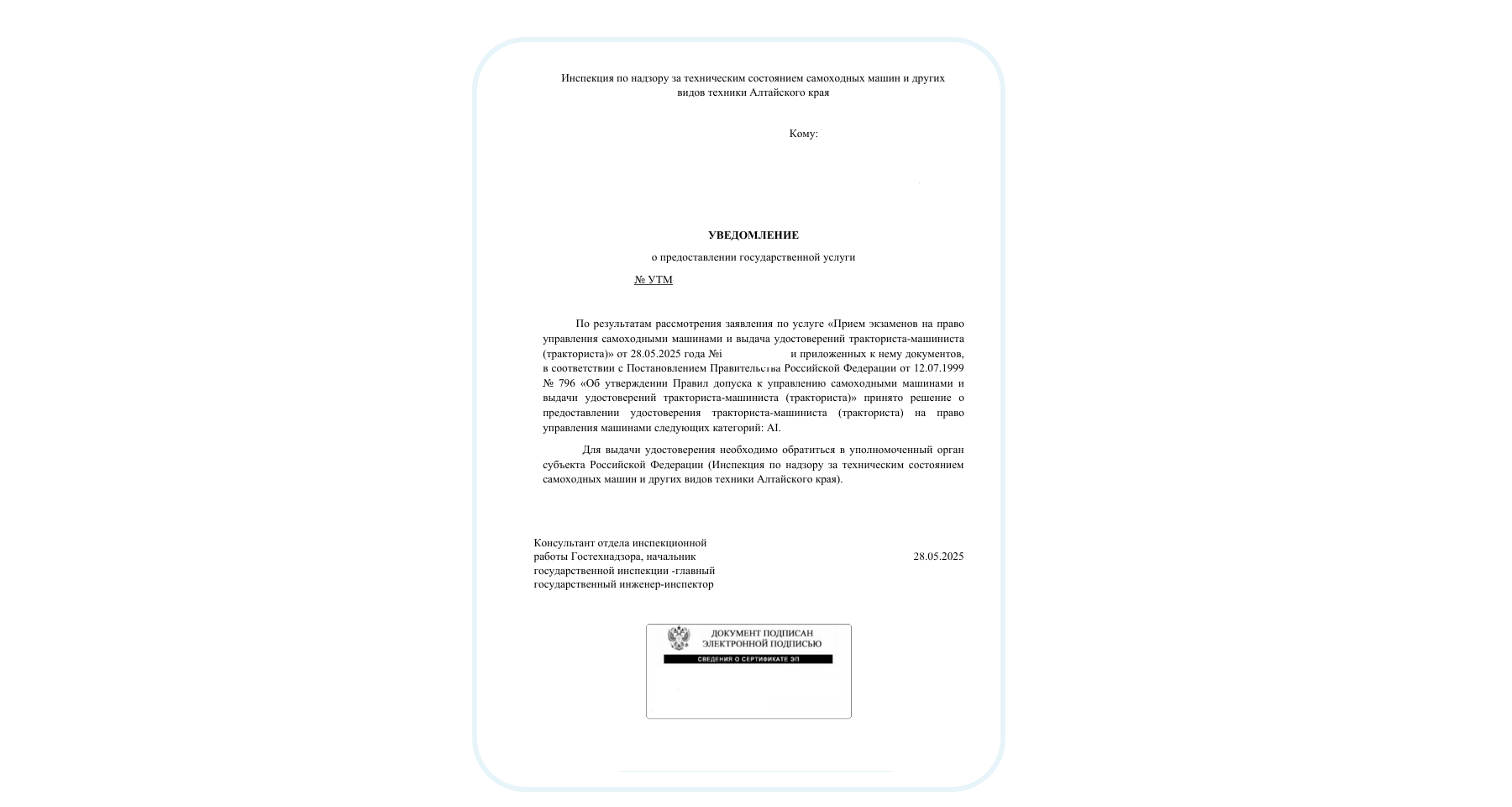 После завершения курсов нужно подать документы в Гостехнадзор: