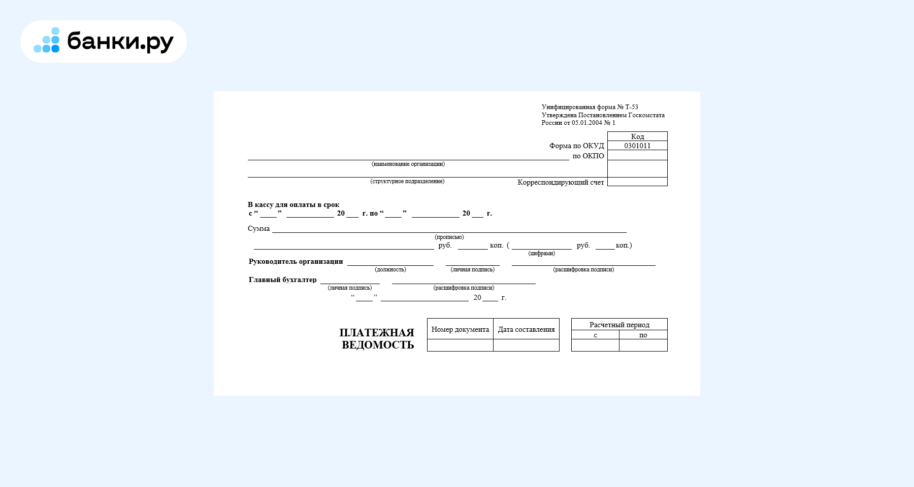 Образец расчетно-платежной ведомости