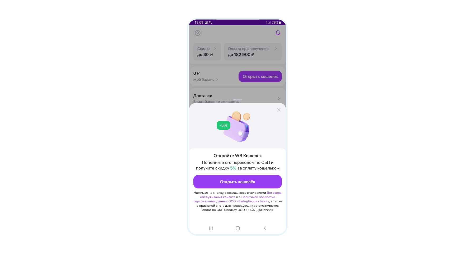 Чтобы начать пользоваться услугой, в мобильном приложении Wildberries надо:
