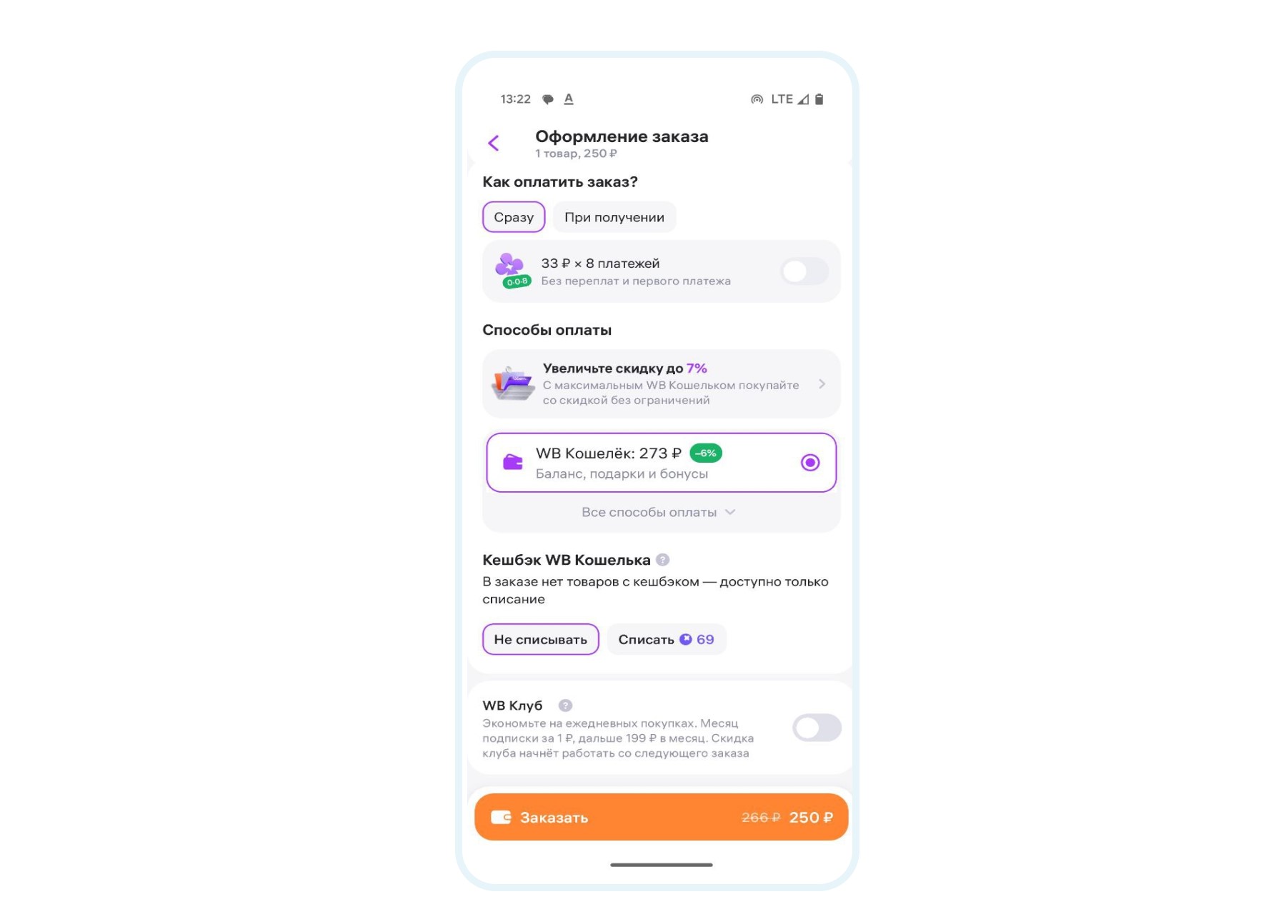 Главное удобство для пользователя — ускорение процесса оплаты и наличие дополнительных скидок. При расчетах через WB-кошелек система автоматически применяет специальную цену на товары со ставкой, размер которой зависит от уровня кошелька — «Минимальный» или «Стандартный» и подписки «WB Клуба».